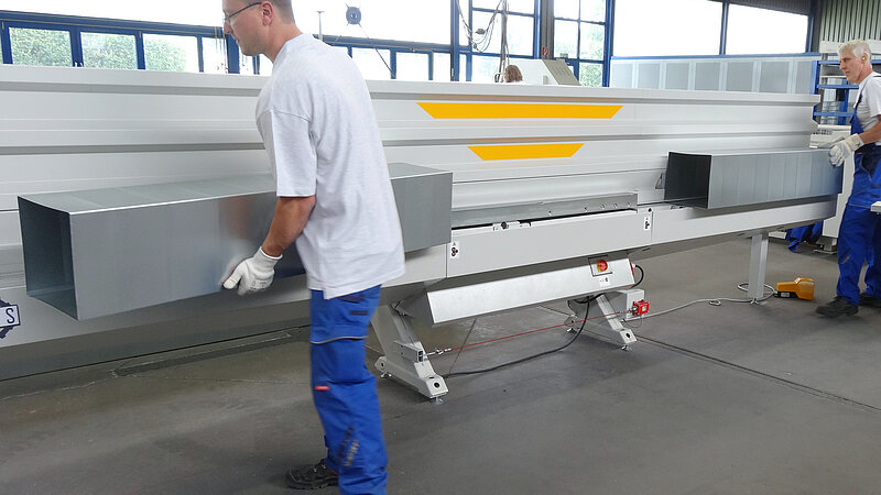 Das Video zeigt die Produktionsgeschwindigkeit nacheinander gefertigter Luftkanäle auf dem RAS DuctZipper in L-Form. Die Blechenden werden nur in die Führungsrinne eingelegt und mit dem AutoPiloten geklemmt. Während der erste Luftkanal durch die Maschine läuft kann ein zweiter Bediener schon den nächsten Kanal einlegen. Das erhöht den Durchsatz und senkt die Stückkosten.