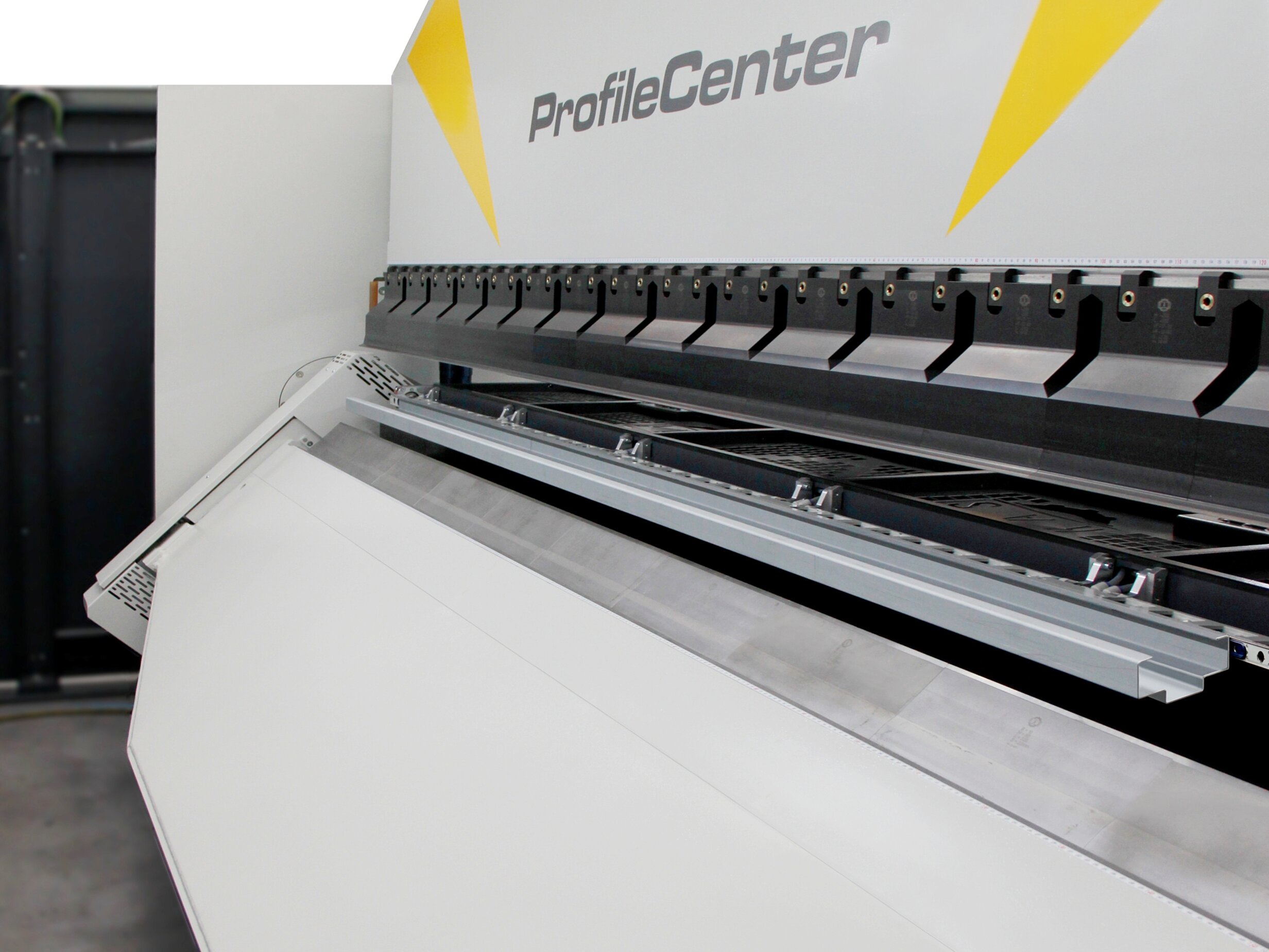 The Profile Center is a bending center for metal components up to 3200 mm in length and 700 mm in width. The capacity of the machine is designed for 2 mm mild steel or 1.5 mm stainless steel materials. The Profile Center uses the folding technology for flexible folding of profiles such as door frames, elevator parts or cable ducts. Precision bending in batch size 1 is no longer a dream, but reality with the Profile Center!