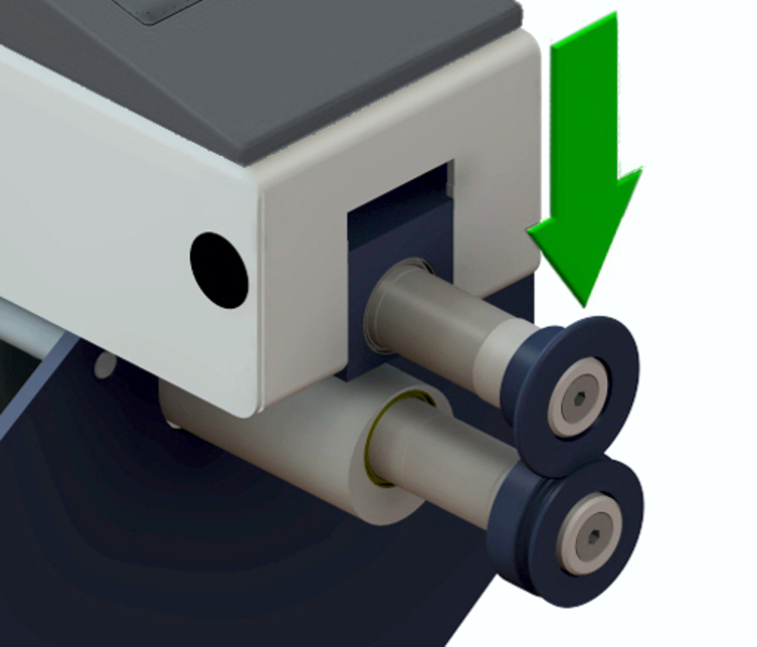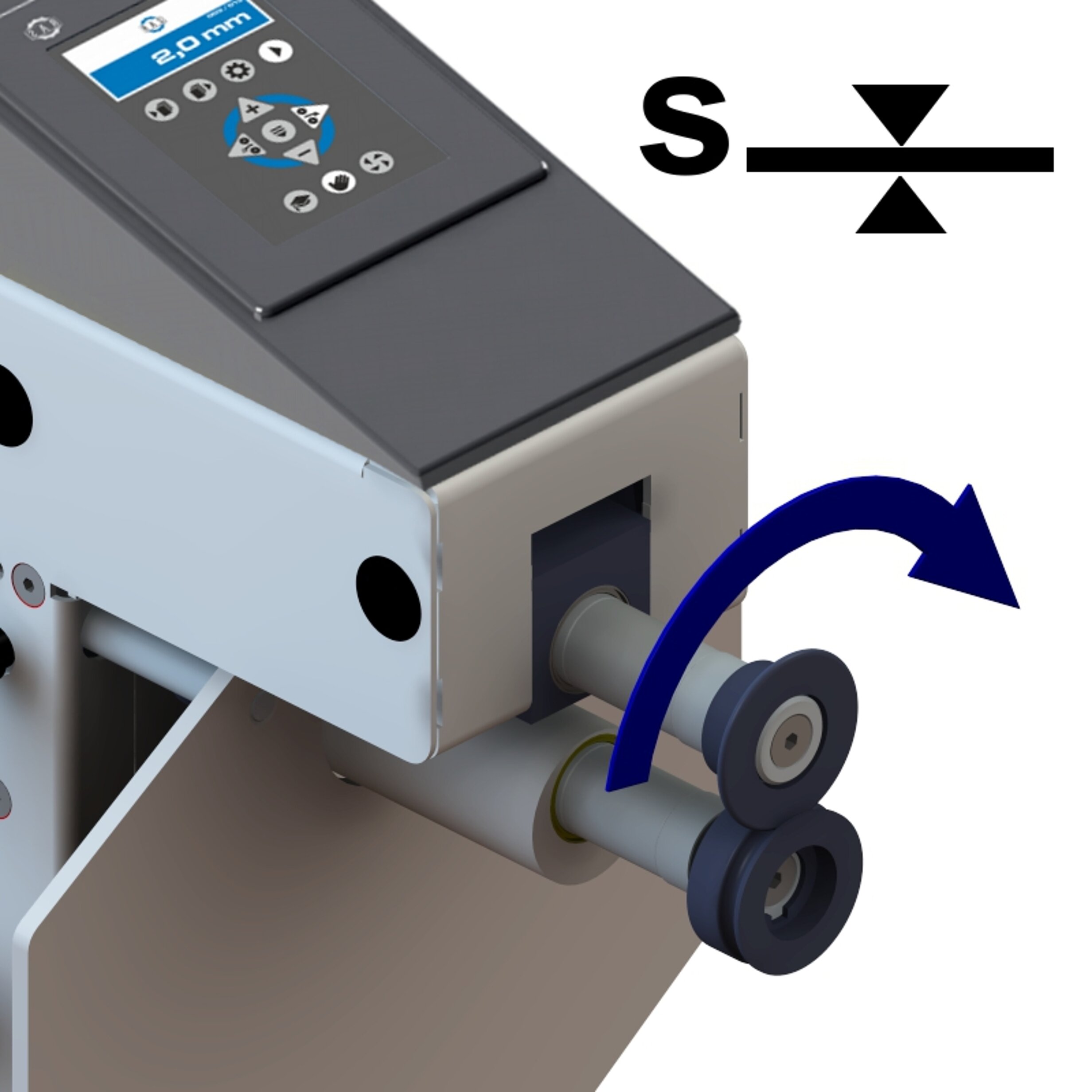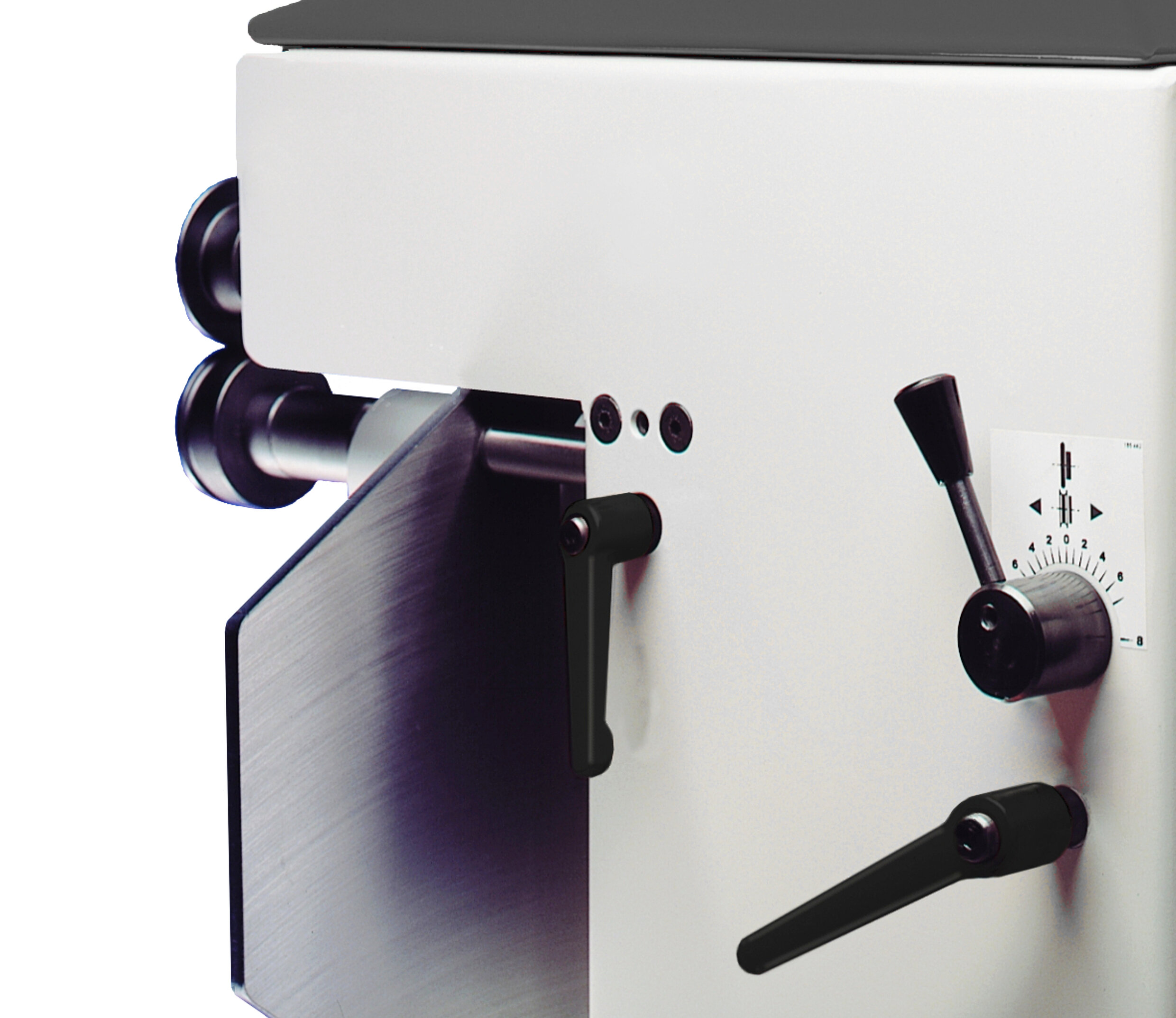 A convenient hand lever allows positioning of the lower wheel, so that both wheels are precisely positioned over one other. A clamping mechanism assures that the shafts stay in position.