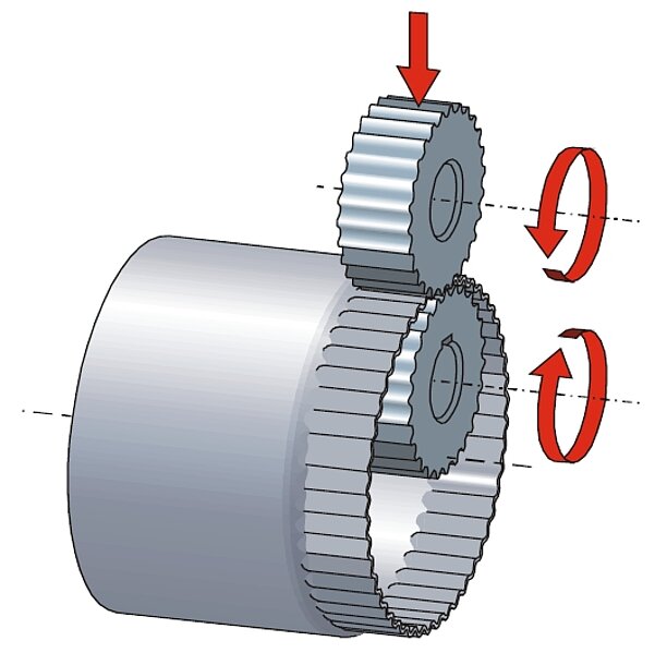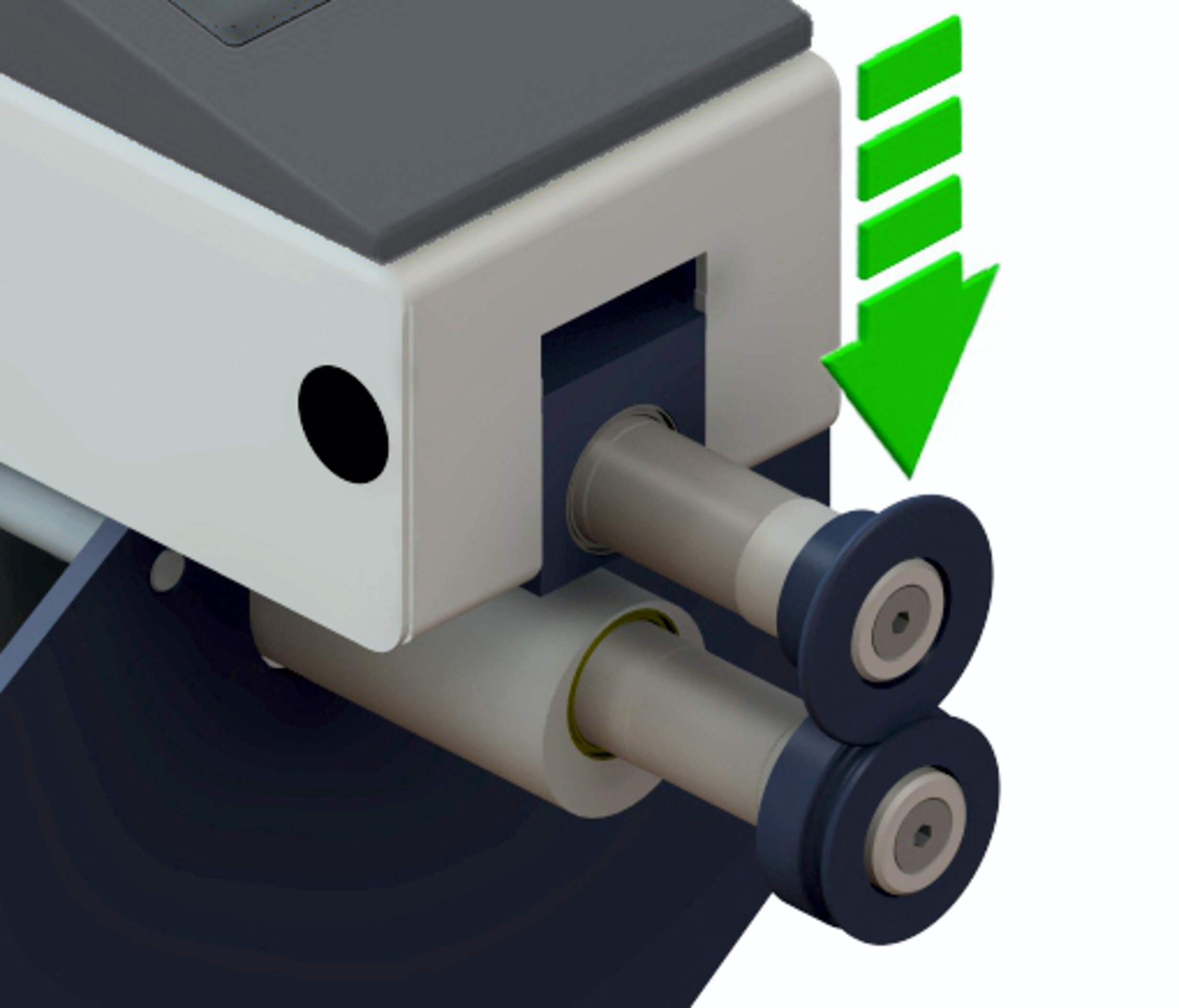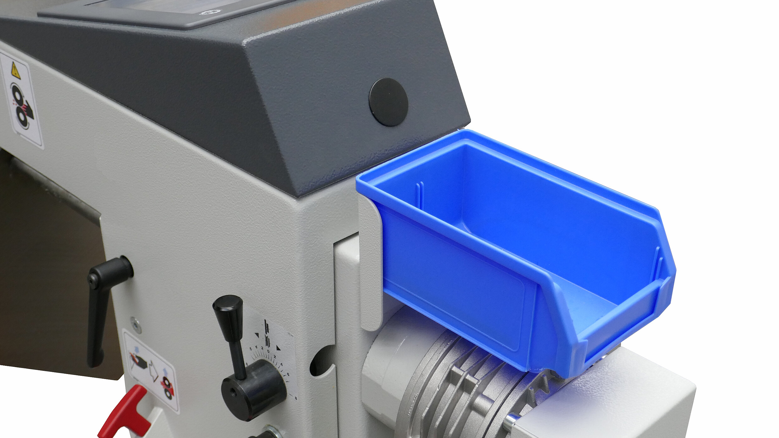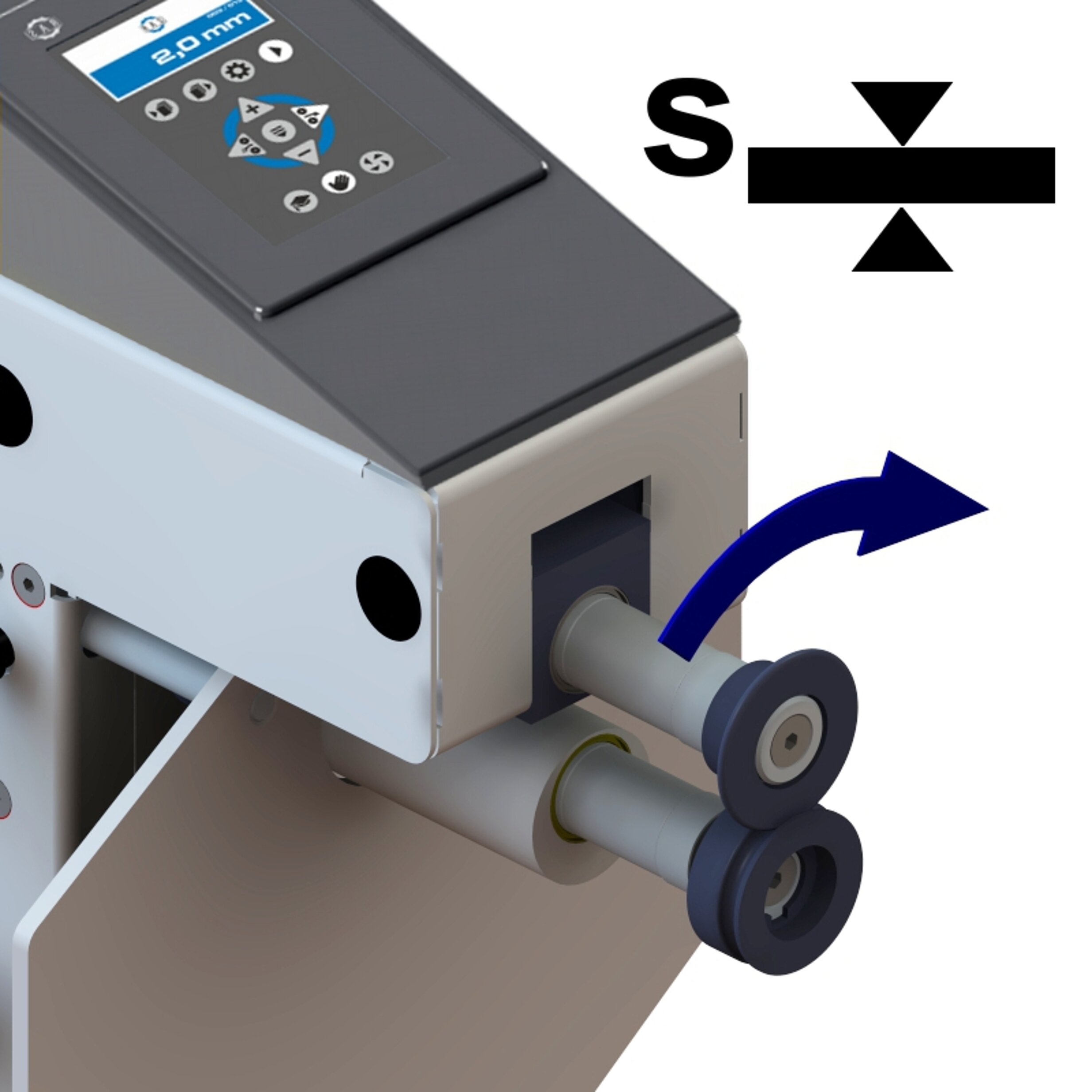 A convenient hand lever allows positioning of the lower wheel, so that both wheels are precisely positioned over one other. A clamping mechanism assures that the shafts stay in position.