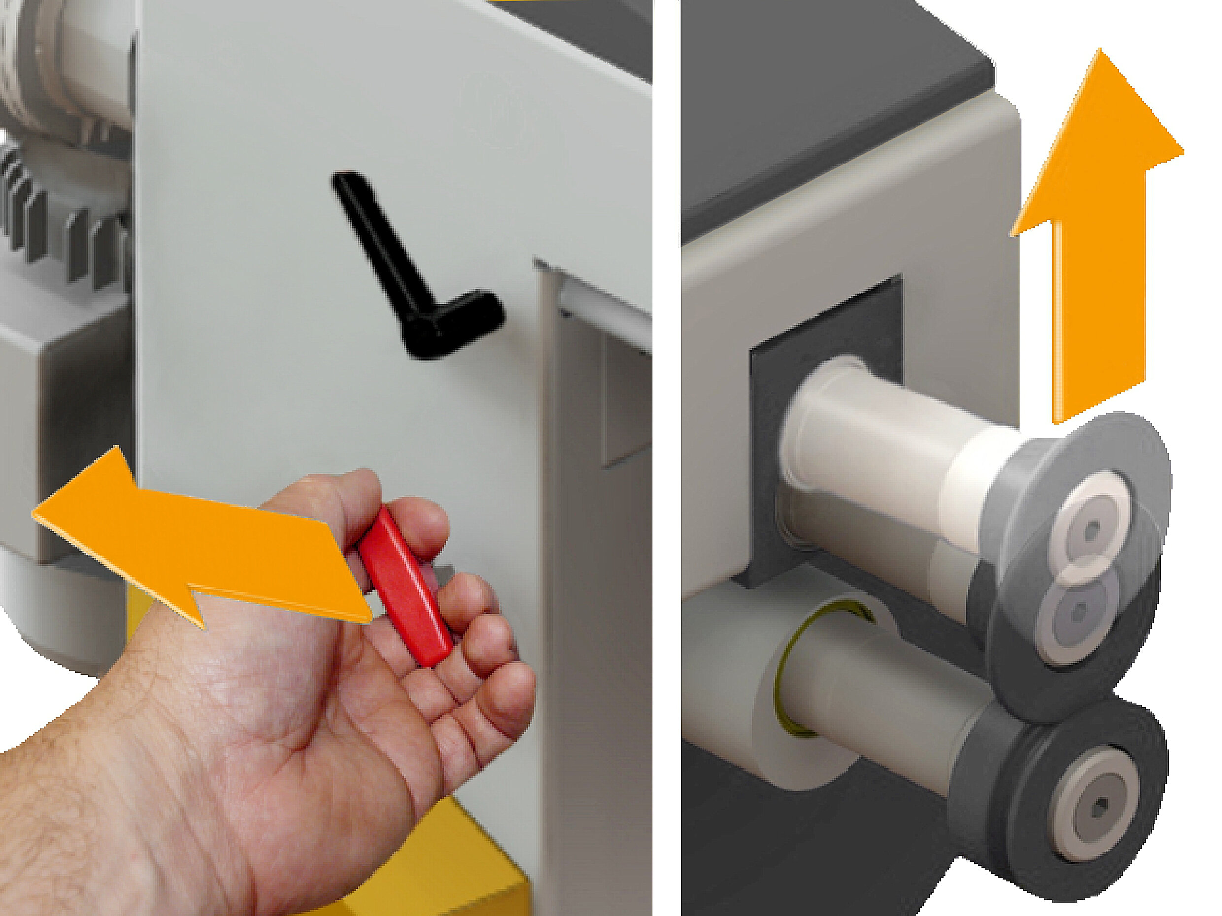 If at risk, simply pull one of the UnLock levers left or right on the machine frame and the wheels open immediately.