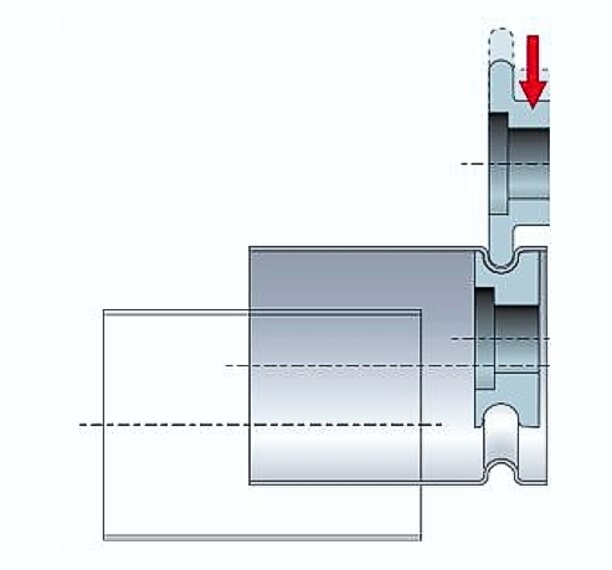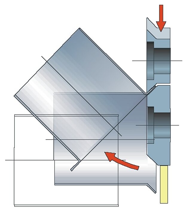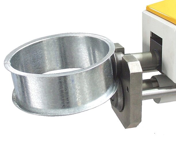 When smoking food, the smoke is injected into the smoking chambers via nozzles and extracted afterwards. The RAS Swaging Machine EasyFormer 12.65-3 uses the double seaming wheels to turn up the flanges on the stainless steel tubes to 90 degrees. Two tubes placed on top of each other can thus be easily welded together at the flanges.