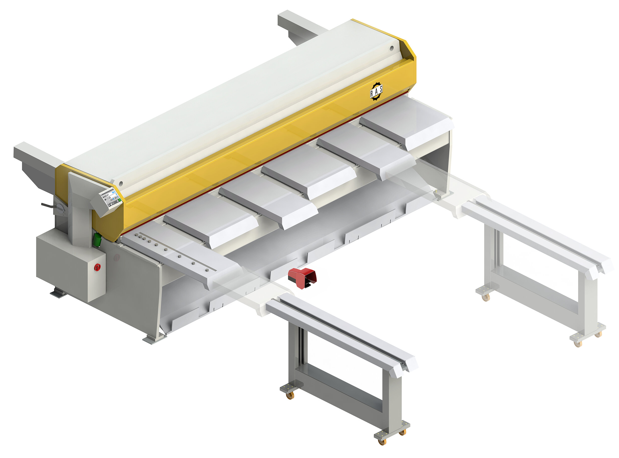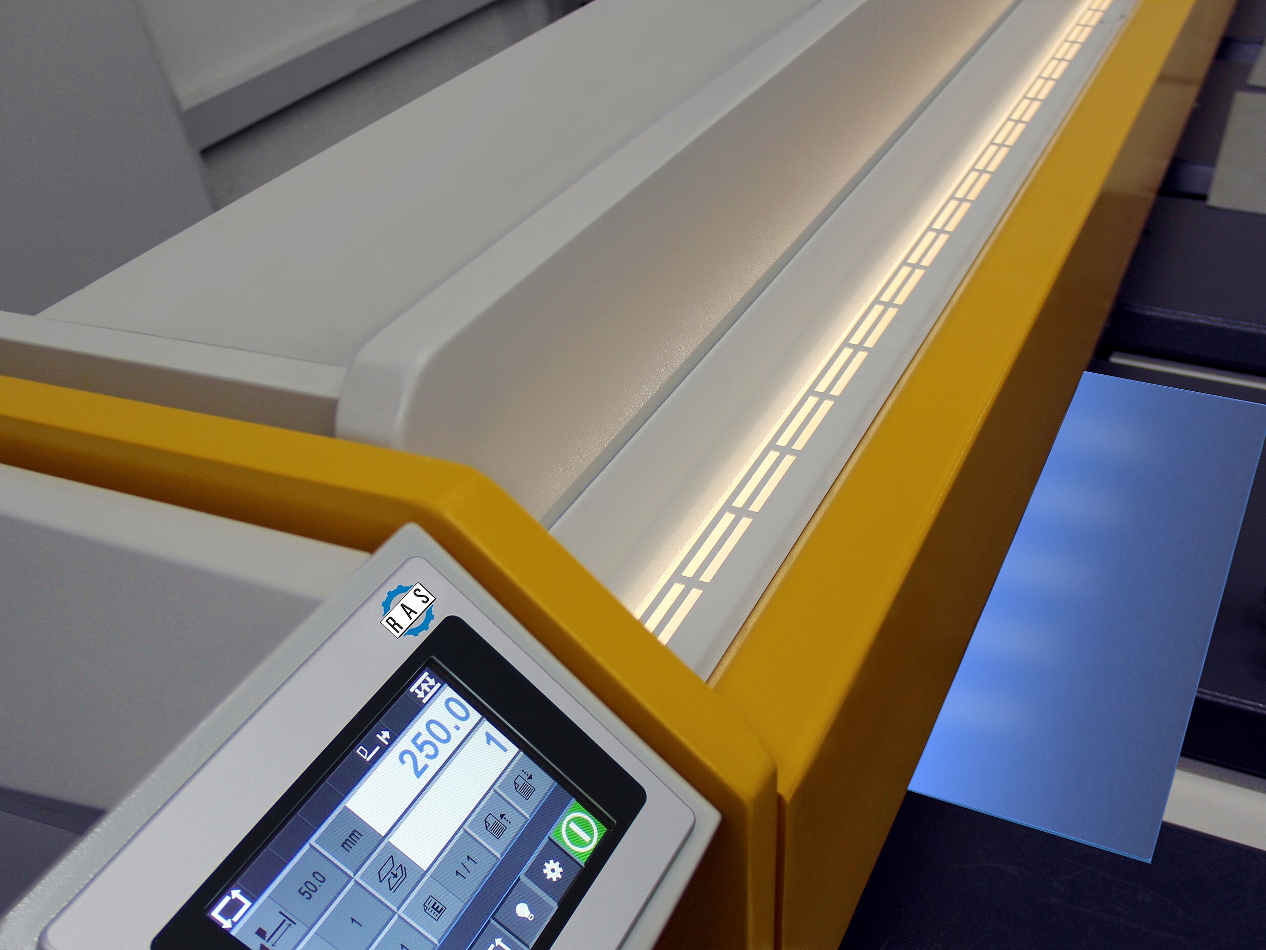 The RAS PRIMEcut is the swing beam shear for precise, surface-protecting cuts in roofing and façade construction as well as in metal fabrication. With cutting lengths of up to 4,150 mm, a modern touchscreen control system and new comfort features, it offers maximum flexibility and outstanding cutting quality for demanding applications.