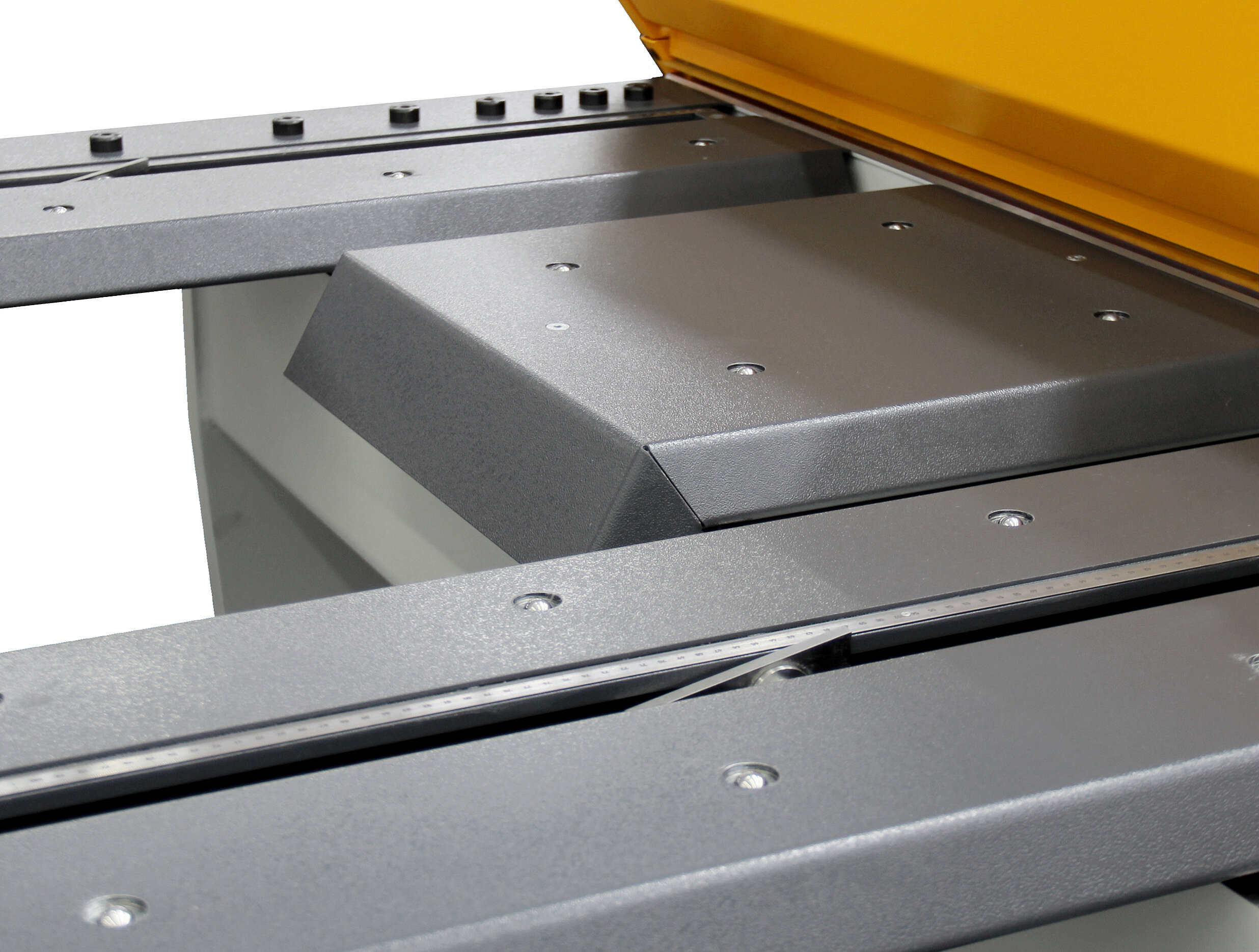 The CNC backgauge positions the blank precisely within the 750 mm stop depth. A bright LED cutting line illumination simplifies the work, if the blanks need to be positioned below the shear blades using marks.