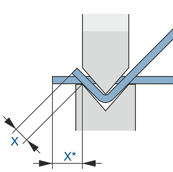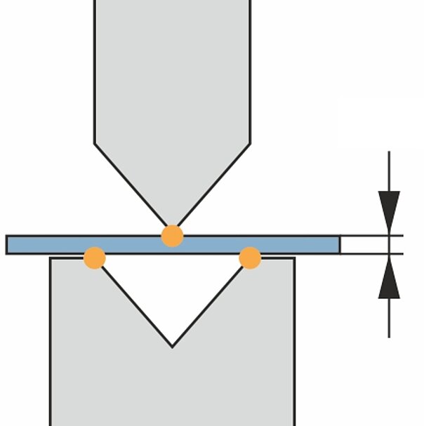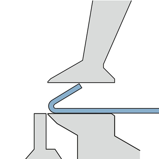 Beim Gesenkbiegen kontaktiert der Stempel das Blech von oben und die V-Matrize von unten.