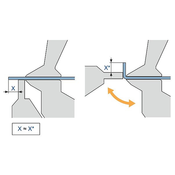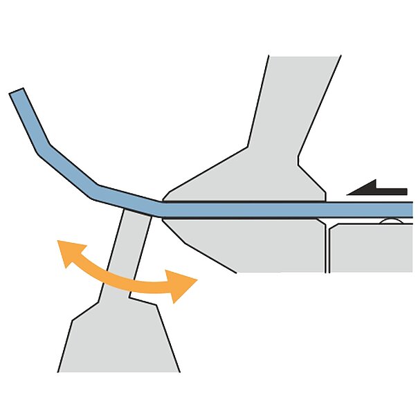 Beim Schwenkbiegen reduziert sich das Gleiten der Werkzeuge am Material auf ein Mindestmaß oder ist bei bestimmten Maschinen (Multibend-Center, ProfileCenter) gar nicht mehr vorhanden.