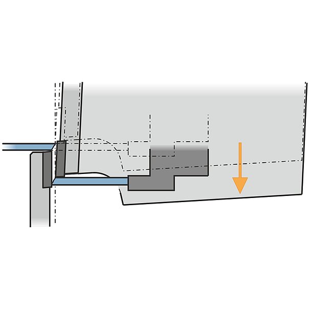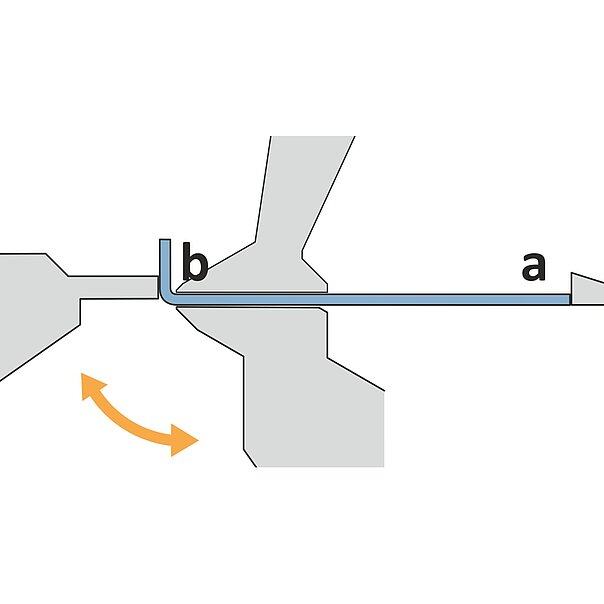 Beim Schwenkbiegen setzt das Biegewangenwerkzeug an der Außenseite des Blechs an und schwenkt exakt auf den eingegebenen Winkel.
