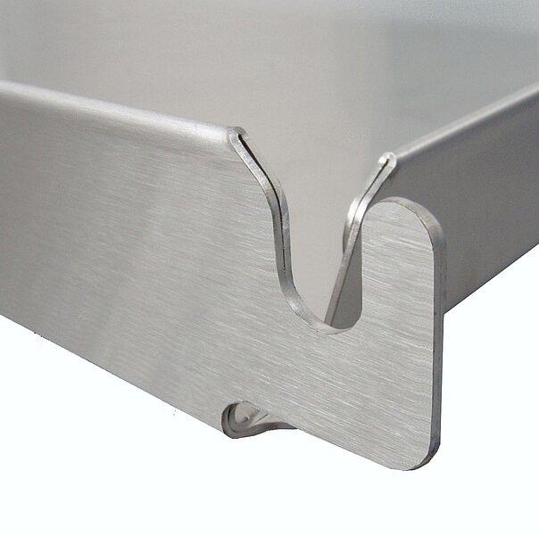 Beim Gesenkbiegen wird das Blech über die Kanten in die V-Matrize gezogen. Die lange Rutschstrecke zeigt sich in Form von Kratzern auf der Außenseite der Bleche.
