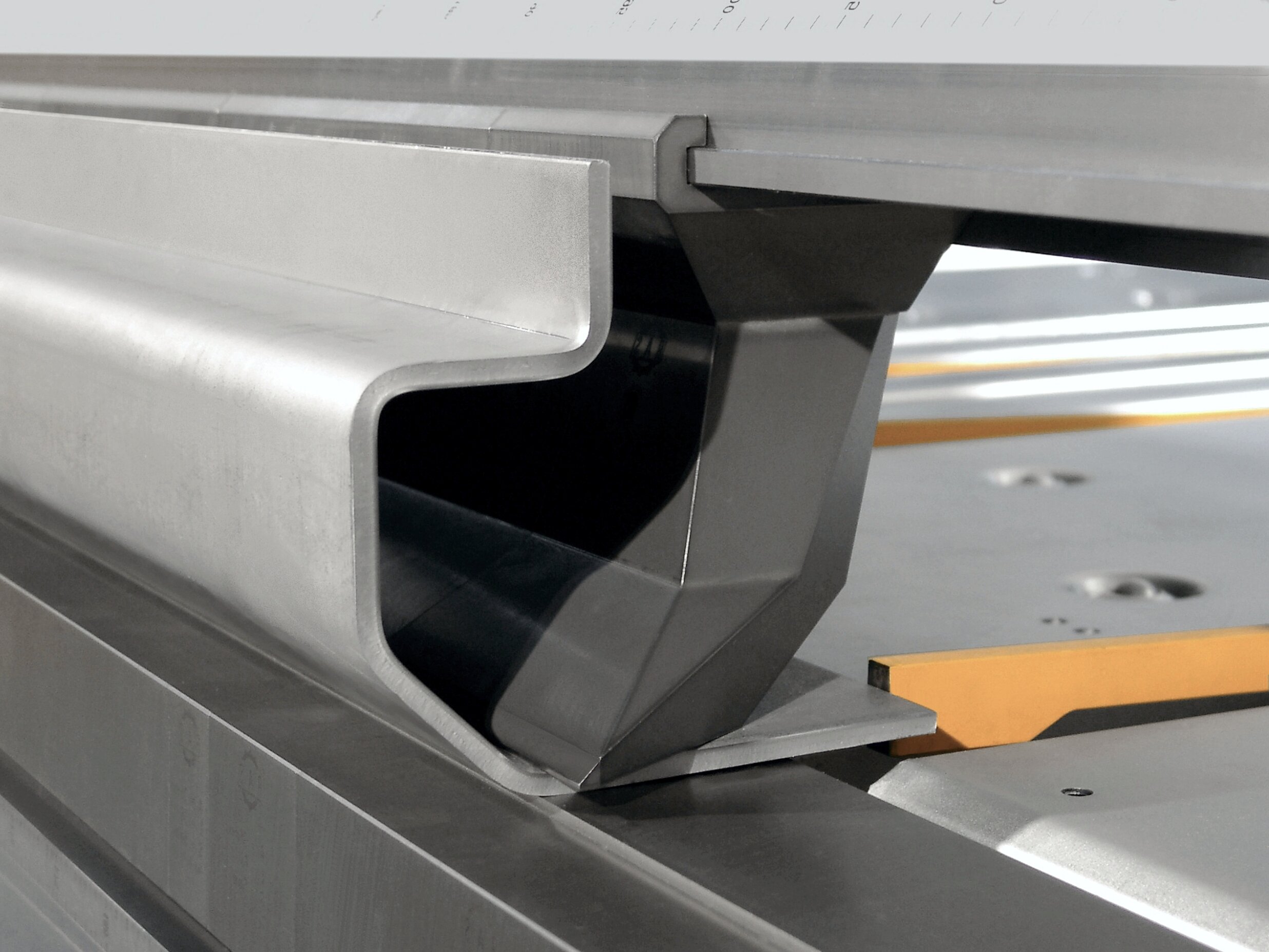 Die Biegewange ist das Herzstück jeder Schwenkbiegemaschine. Das intelligente Bombiersystem der GIGAbend gleicht Verformung, hervorgerufen durch die Biegekräfte, selbsttätig aus. Sensoren messen beim Anbiegen die Wangendurchbiegung. Das Resultat sind gerade Biegungen und passgenaue Biegeteile.