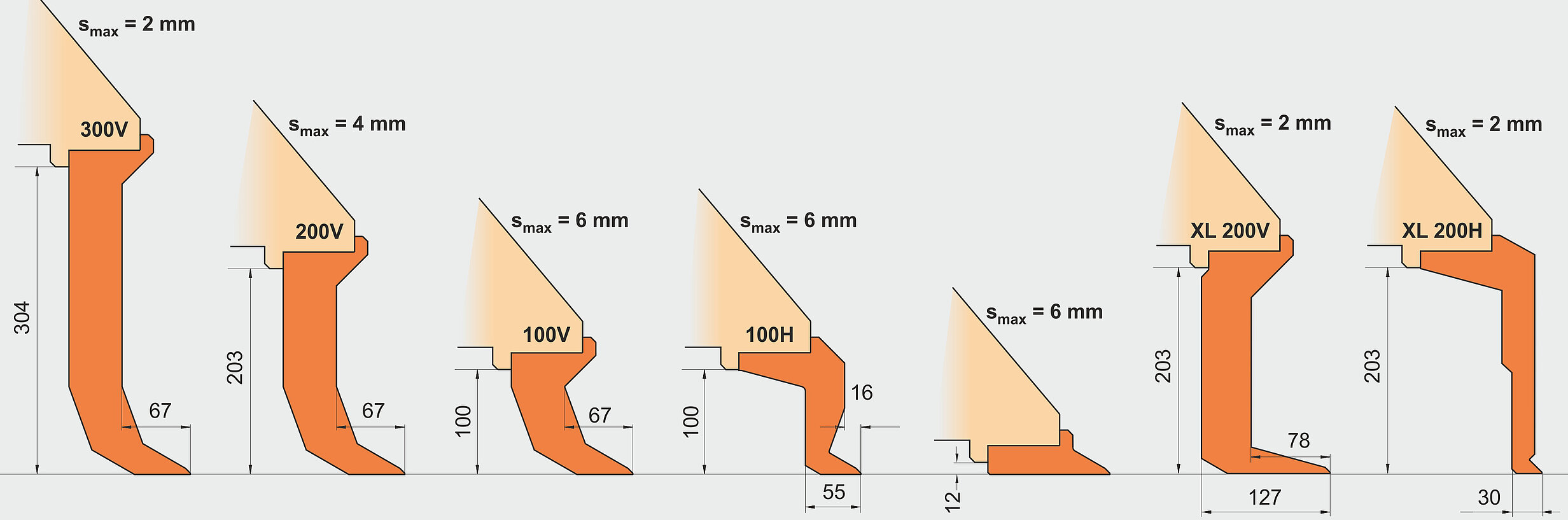 | Blechdicke max (400 N/mm²) | 6,0 mm | 5,0 mm |