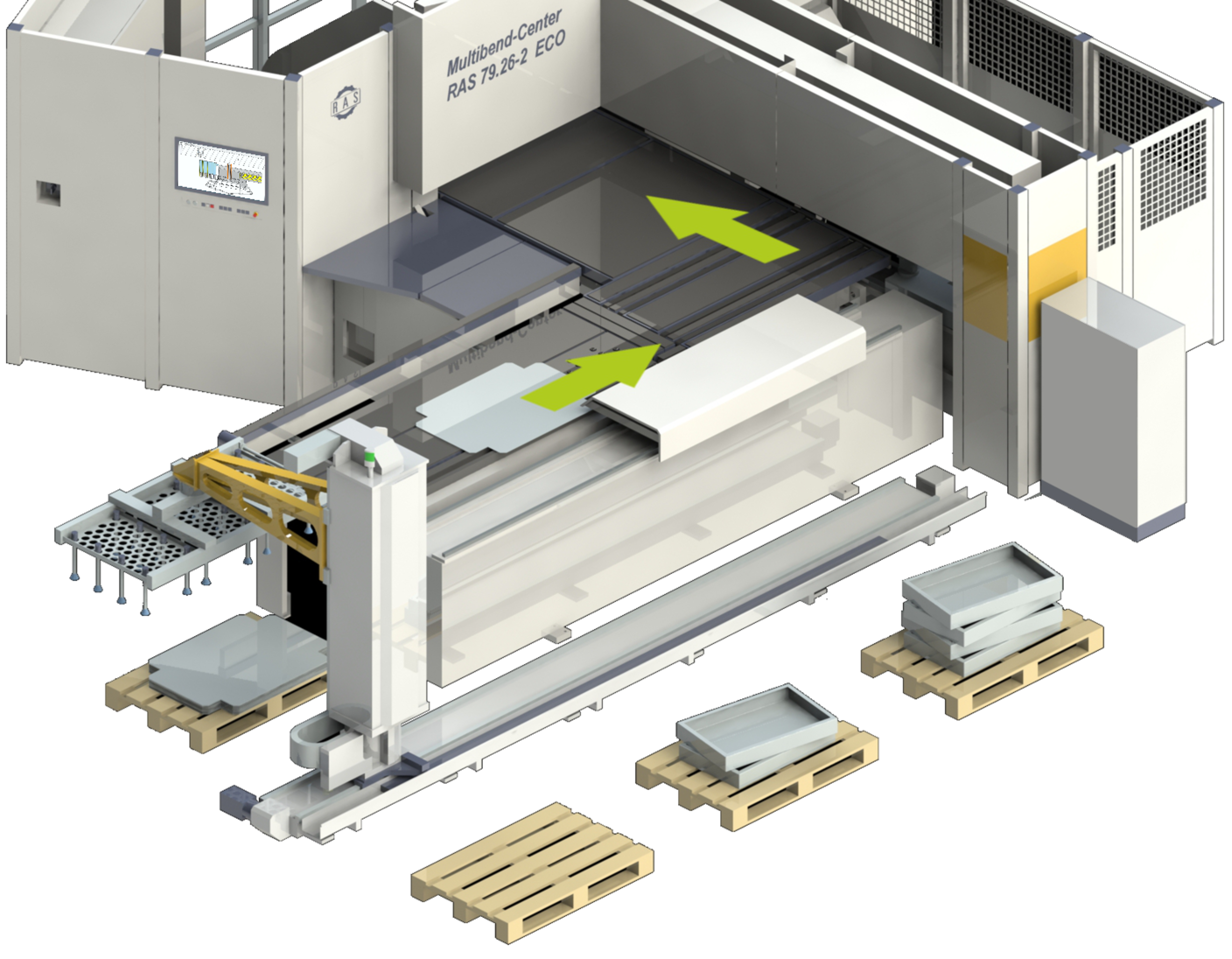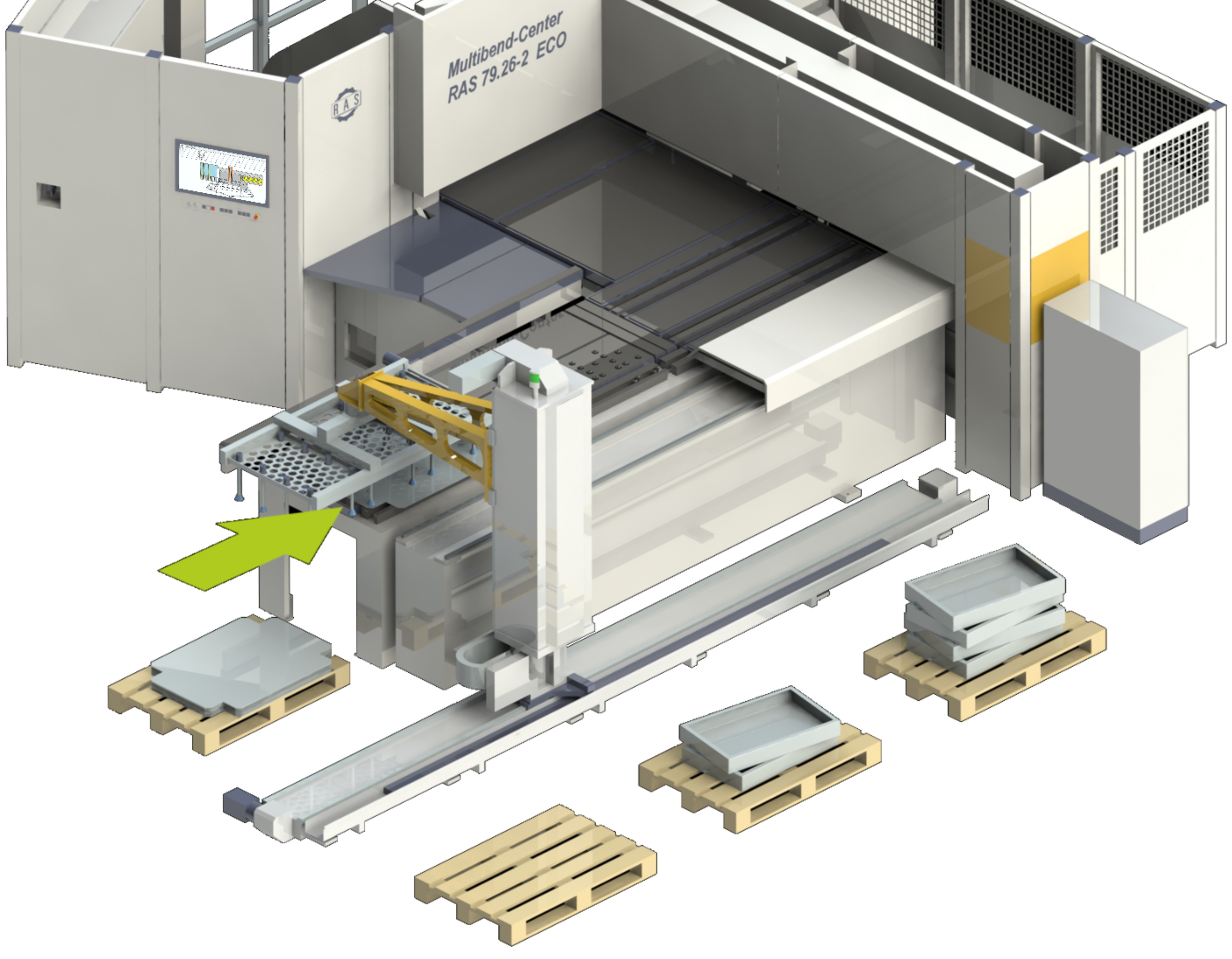 Nachdem das RAS Multibend-Center ECO als günstige Einsteigerlösung ins automatische Biegen seine Fangemeinde gefunden hatte, kam schnell der Wunsch nach einer einfachen Automatisierung beim Beladen von Platinen und Stapeln der fertigen Biegeteile auf. Hier ist die Lösung: Multibend-Center ECOauto.