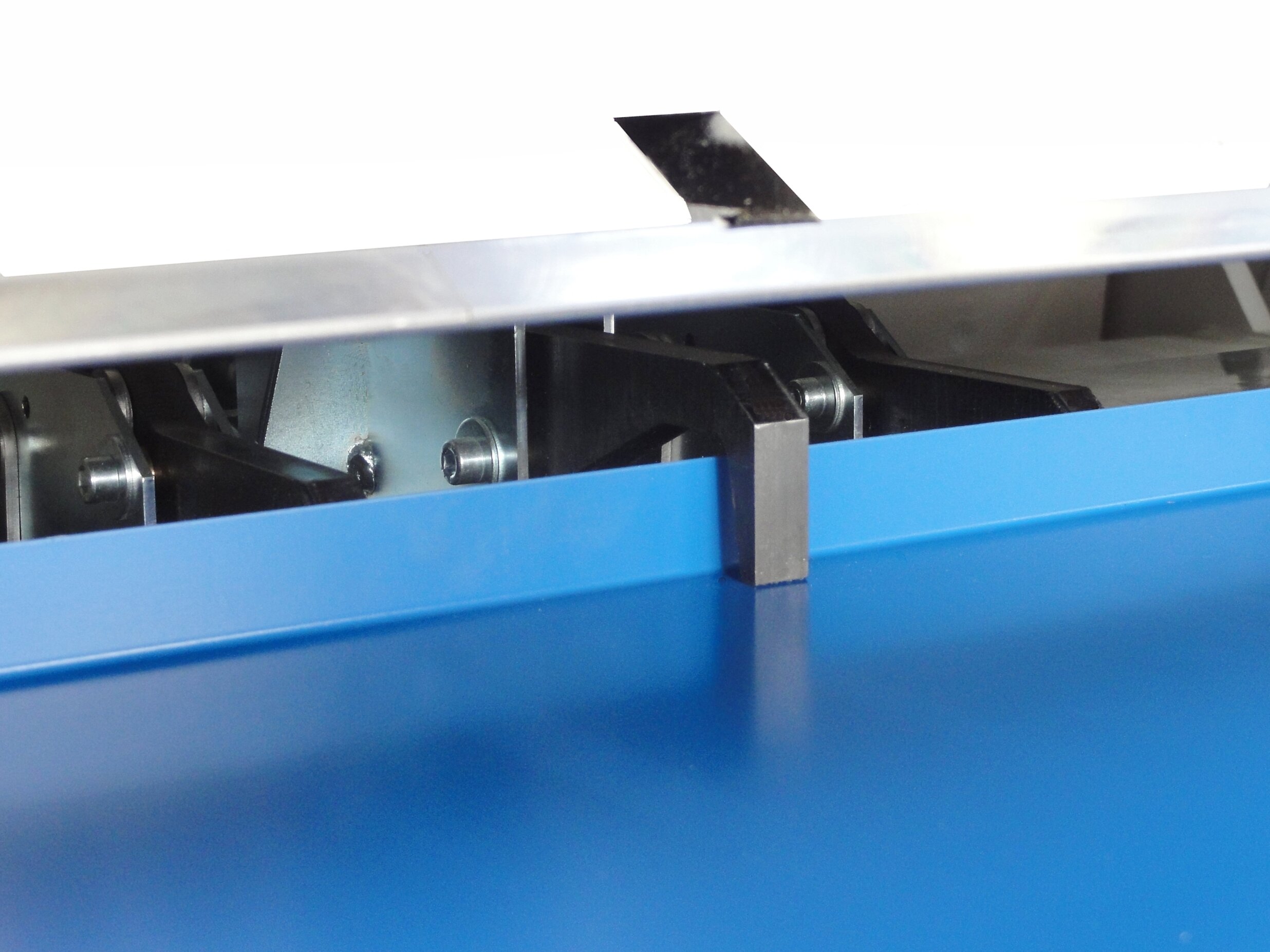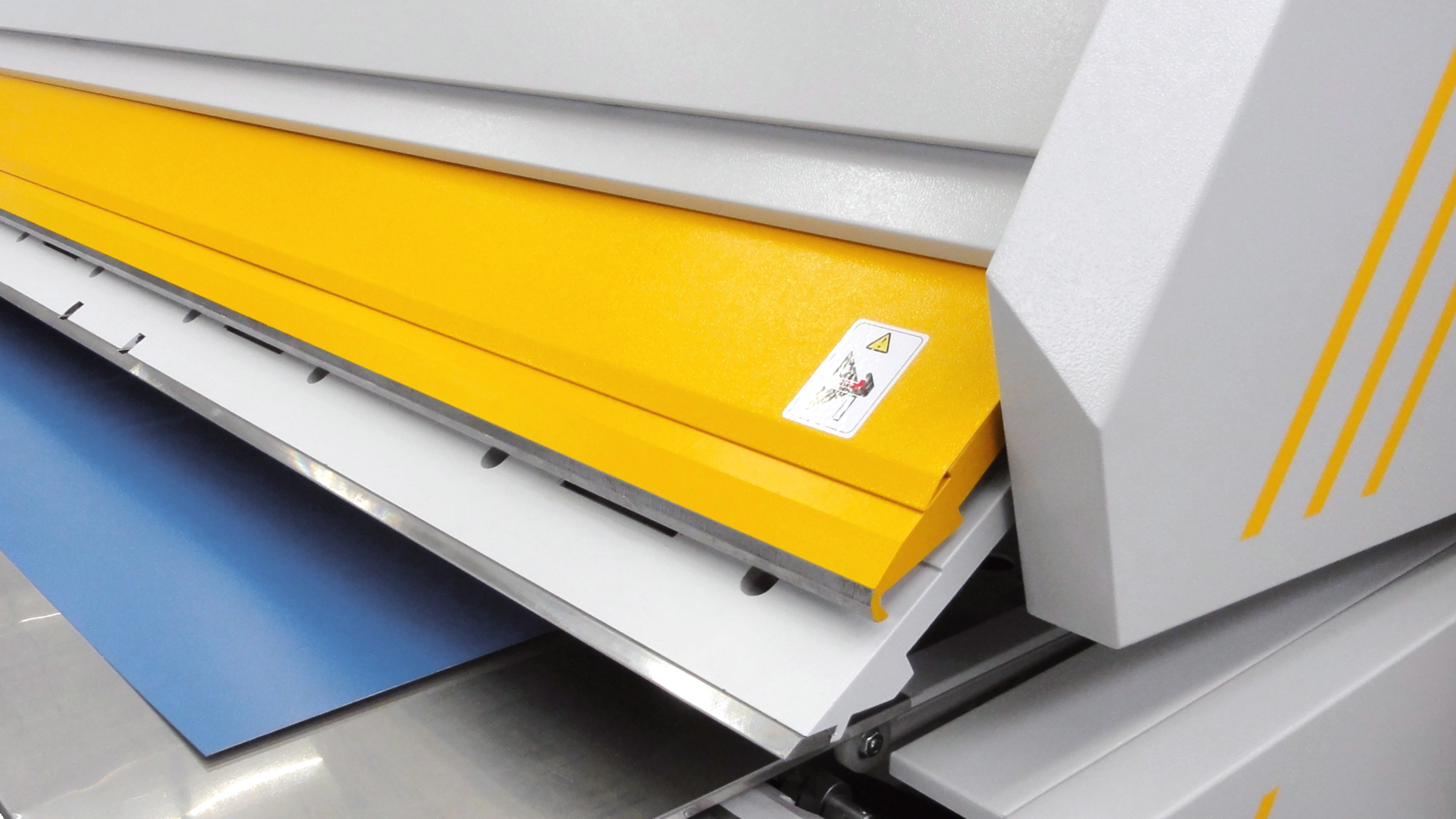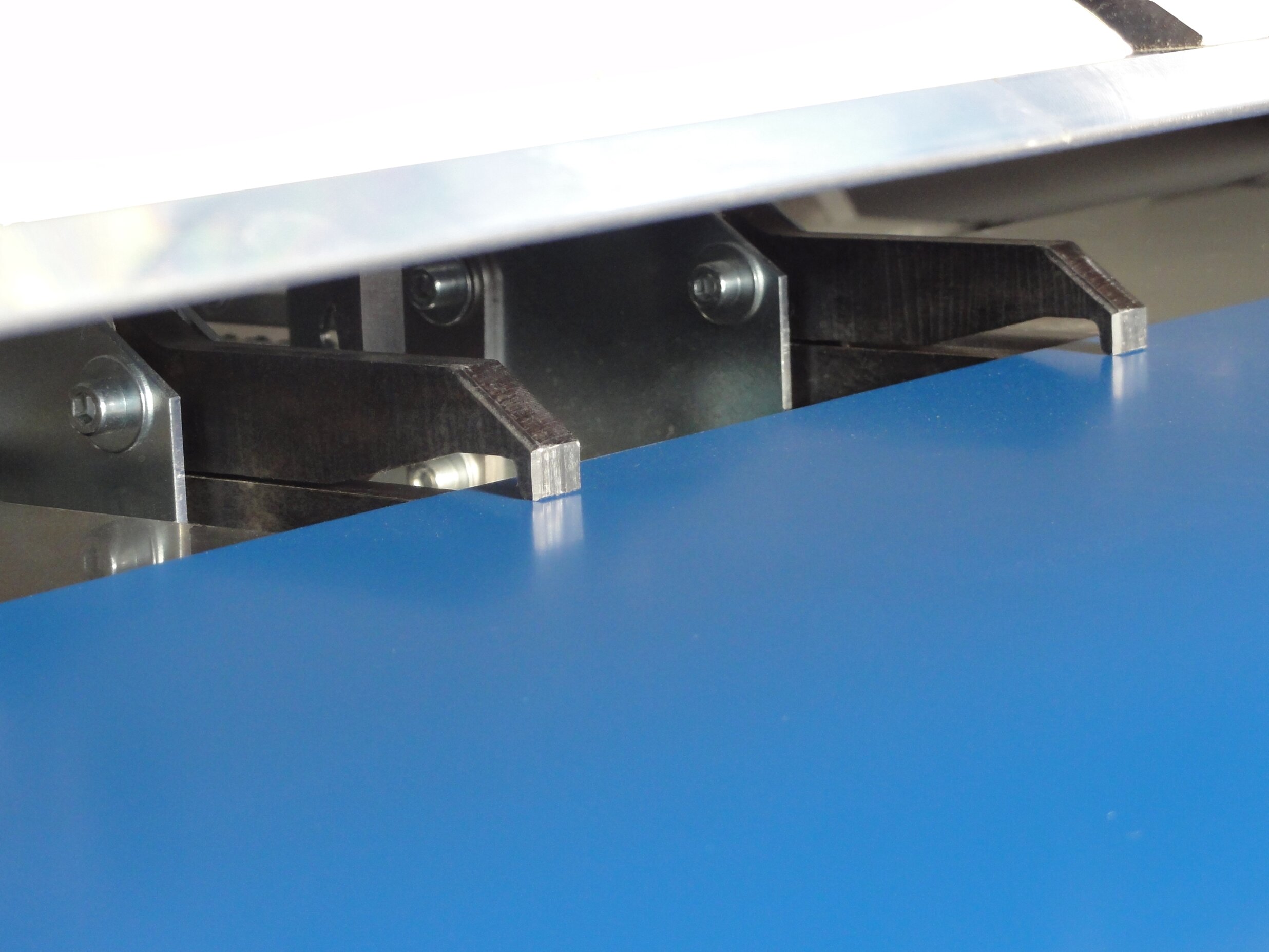 Einen Zuschnitt in eine Langbiegemaschine einzulegen war noch nie so einfach. Die Tischbleche aus Edelstahl fahren automatisch genau so weit aus der Maschine heraus, dass der Bediener den Blechzuschnitt bequem auflegen kann.