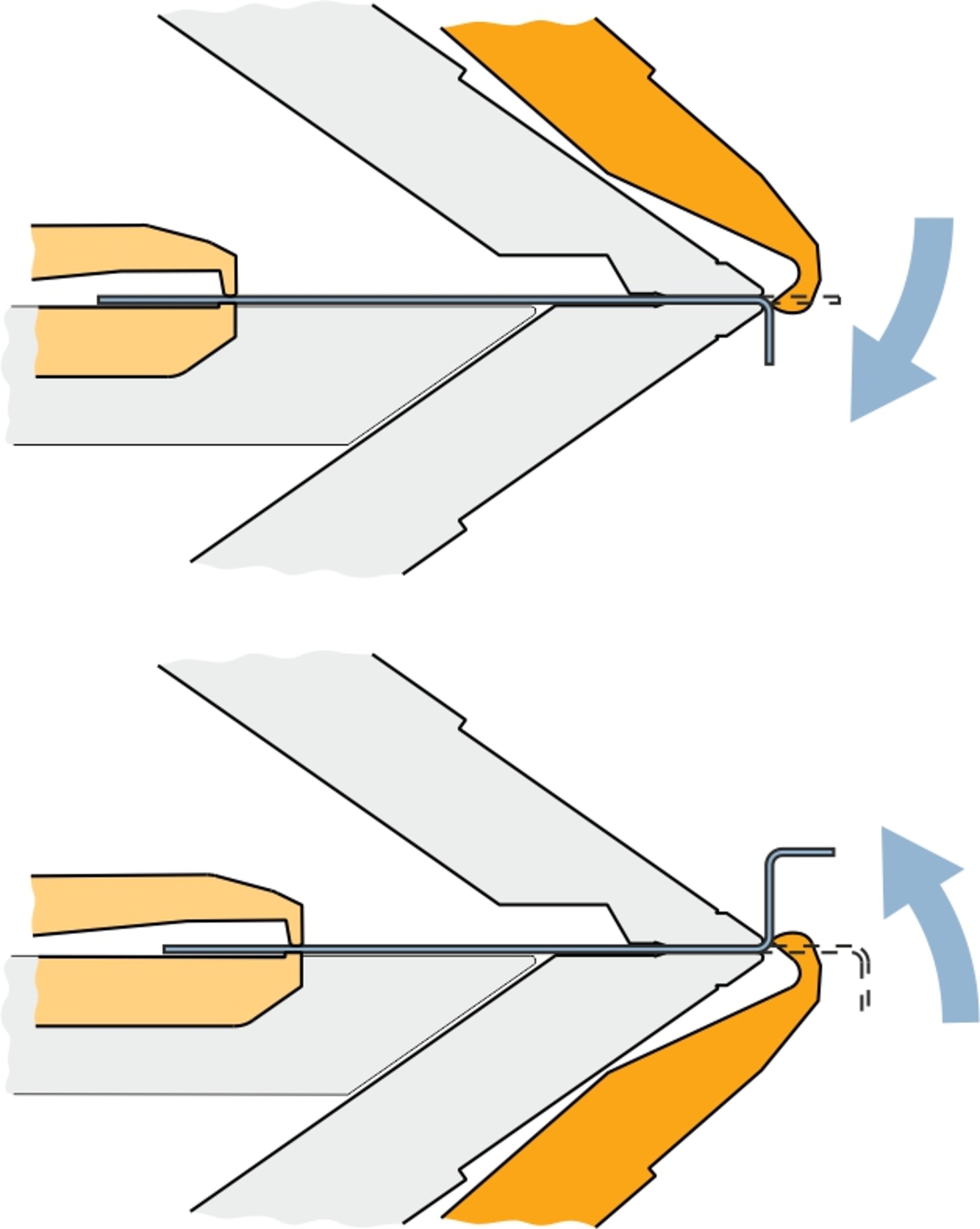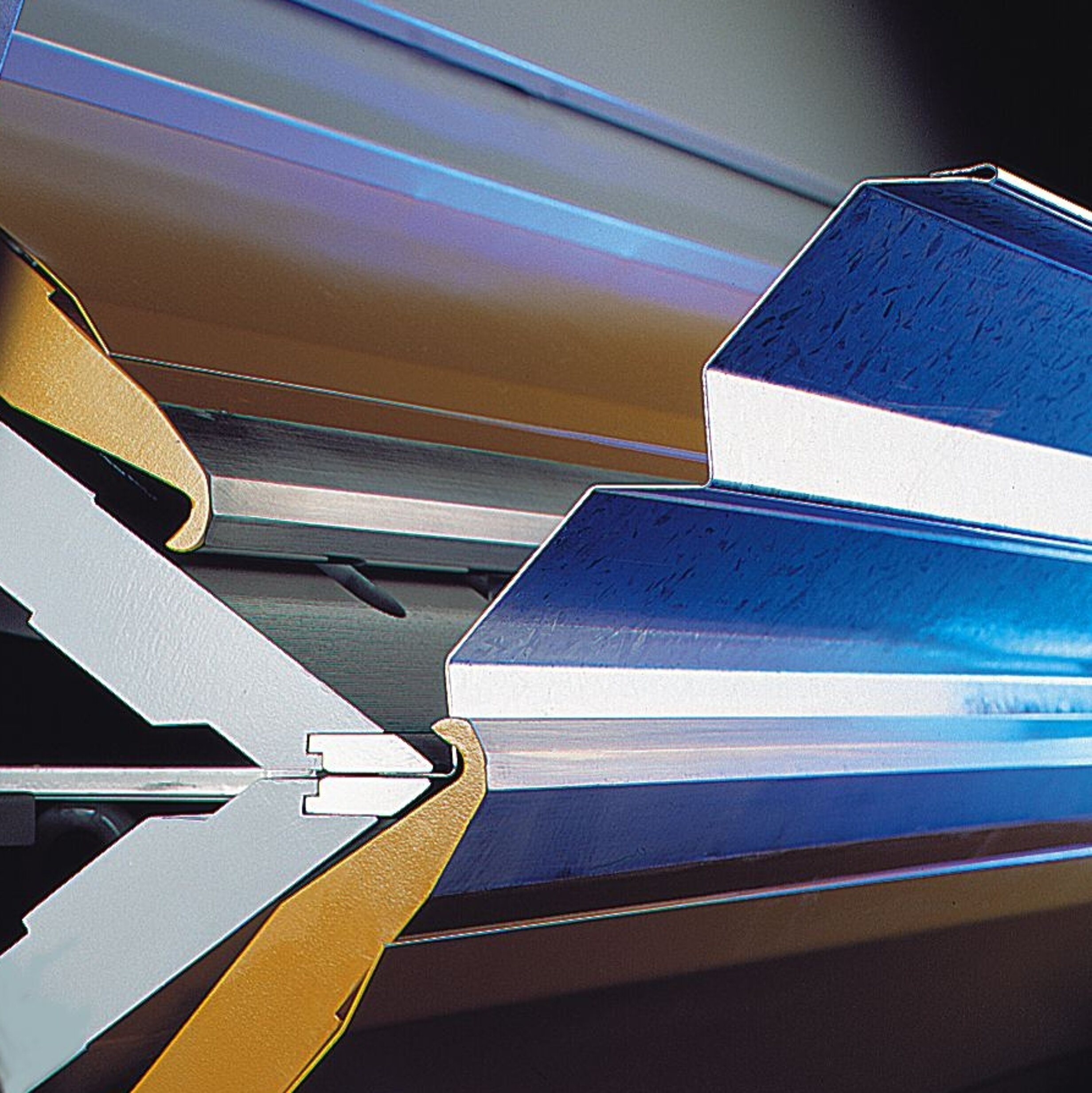 Die Werkzeuge rollen auf der Blechoberfläche ab und biegen vorbeschichtete Materialien, ohne deren Oberfläche zu beschädigen.
