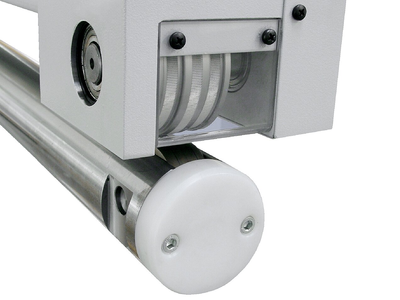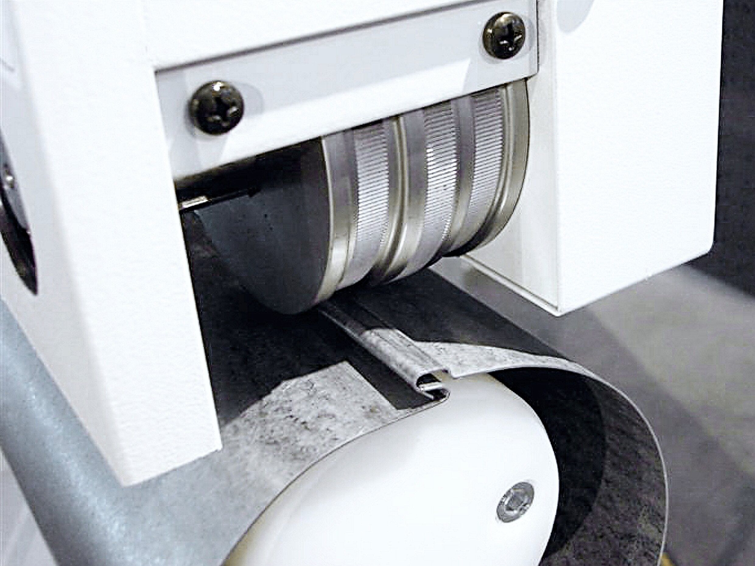 Upper pressing roll opens automatically at the end of the tube