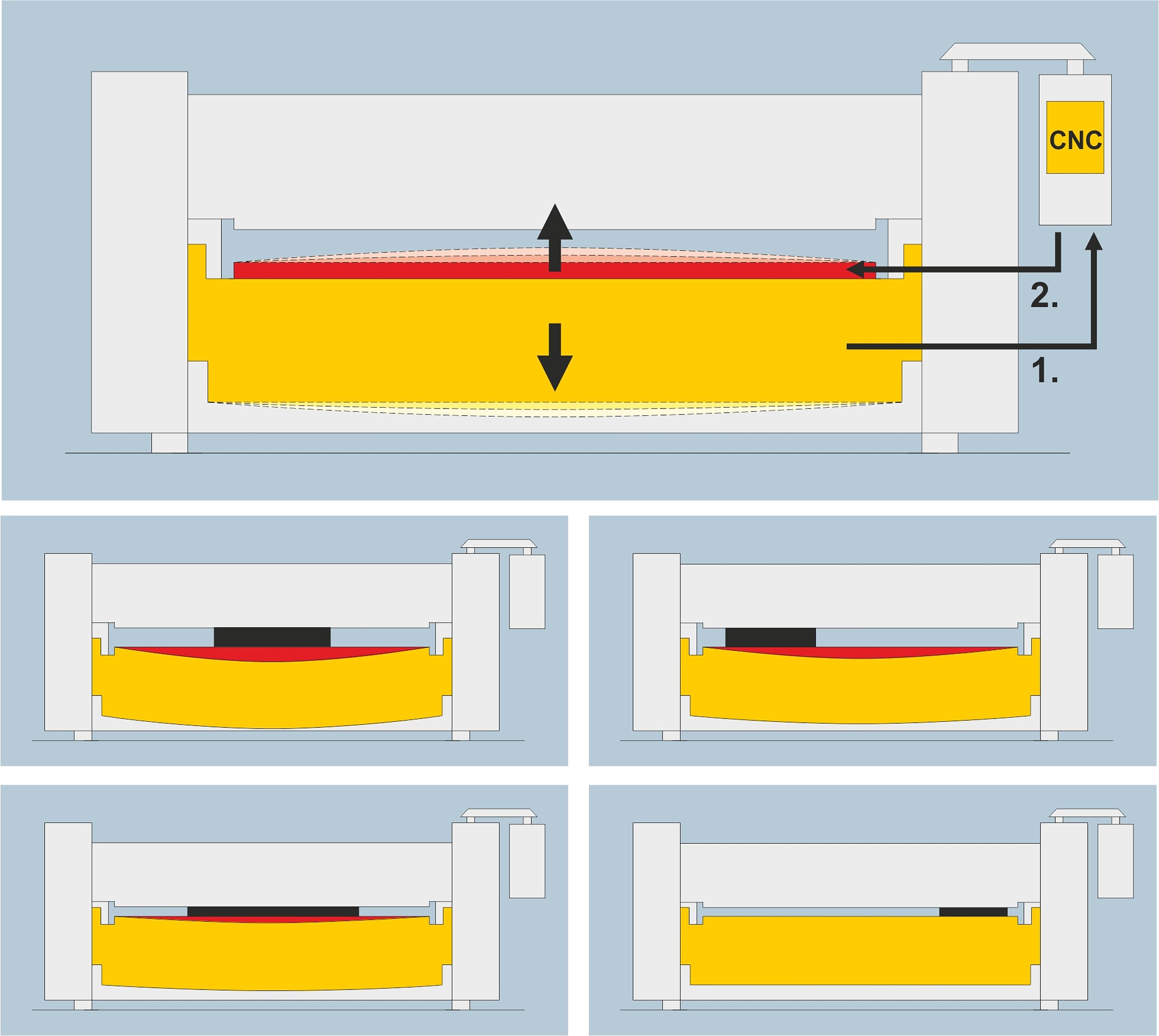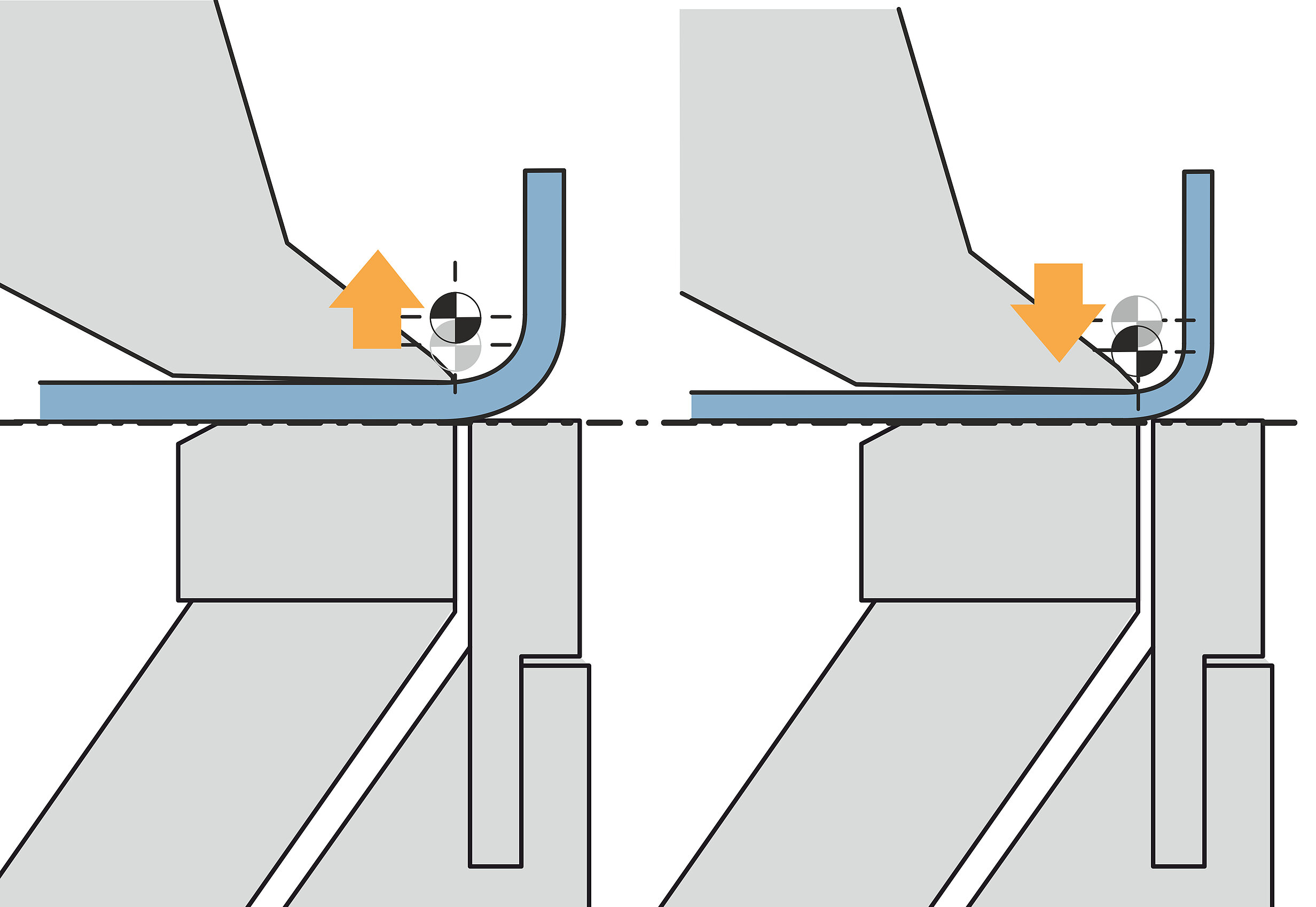 Die Biegewange ist das Herzstück jeder Schwenkbiegemaschine. Das intelligente Bombiersystem der GIGAbend gleicht Verformung, hervorgerufen durch die Biegekräfte, selbsttätig aus. Sensoren messen beim Anbiegen die Wangendurchbiegung. Das Resultat sind gerade Biegungen und passgenaue Biegeteile.