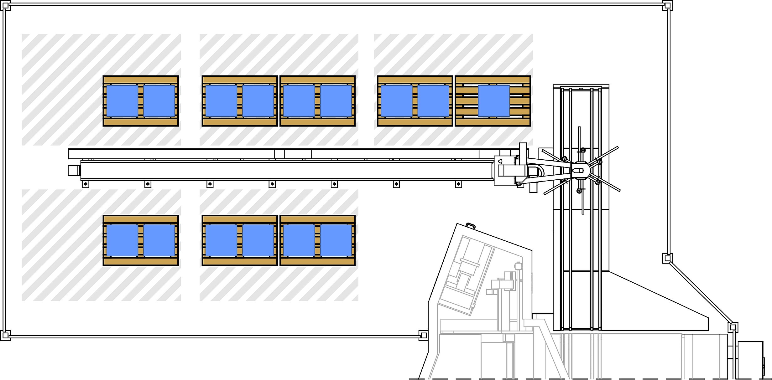 - Volle Paletten gelangen zur Entnahmestelle