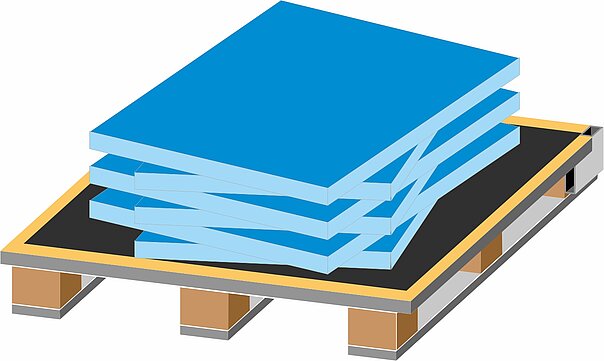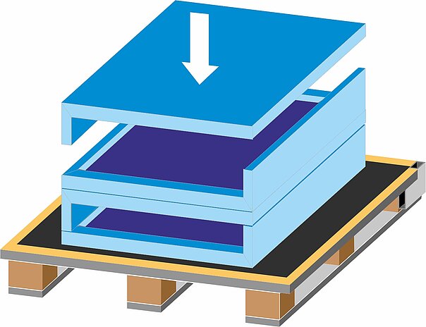 - Paletten ohne Rückwand erlauben ein horizontales Stapeln