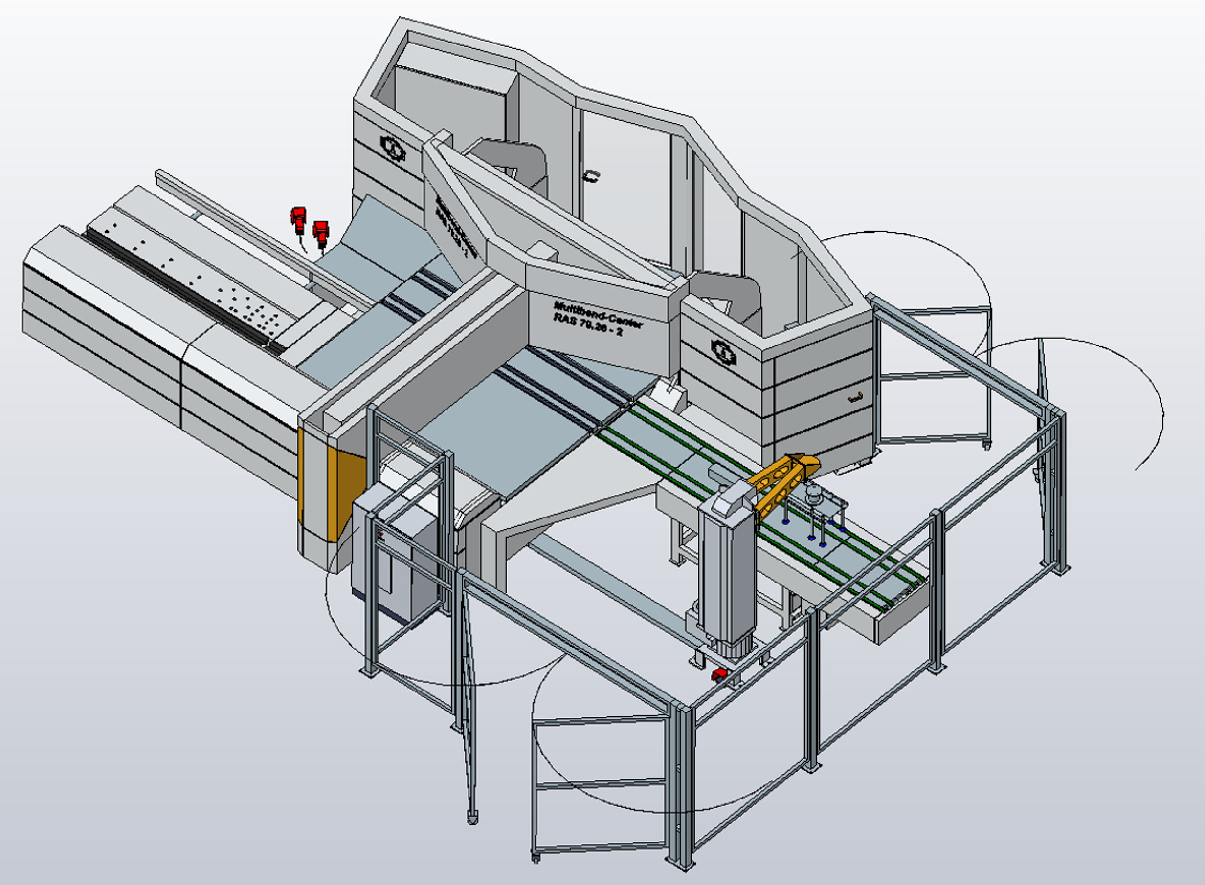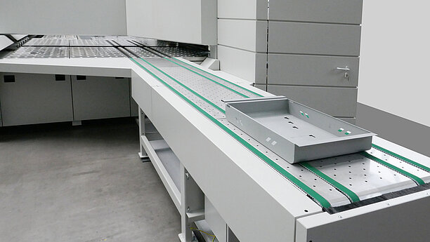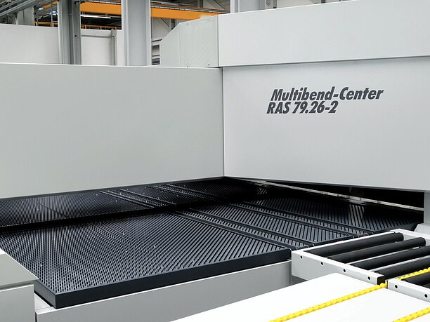 Die Auslaufseite des RAS Multibend-Centers kann um ein Pusherband erweitert werden. Damit lassen sich fertige Biegeteile verschiedenen Nachfolgeoperationen oder Montagelinien zuführen.