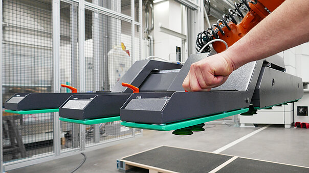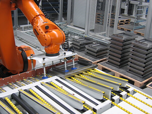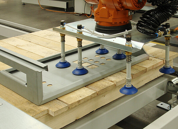 Roboterbeladung mit Saugern und Magneten