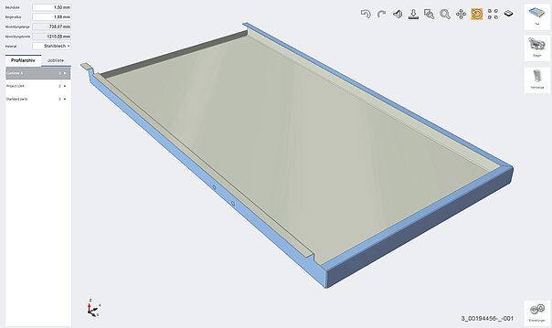 Die Bendex Office Software programmiert aufgehend von den importierten CAD-Daten des Biegeteils automatisch: