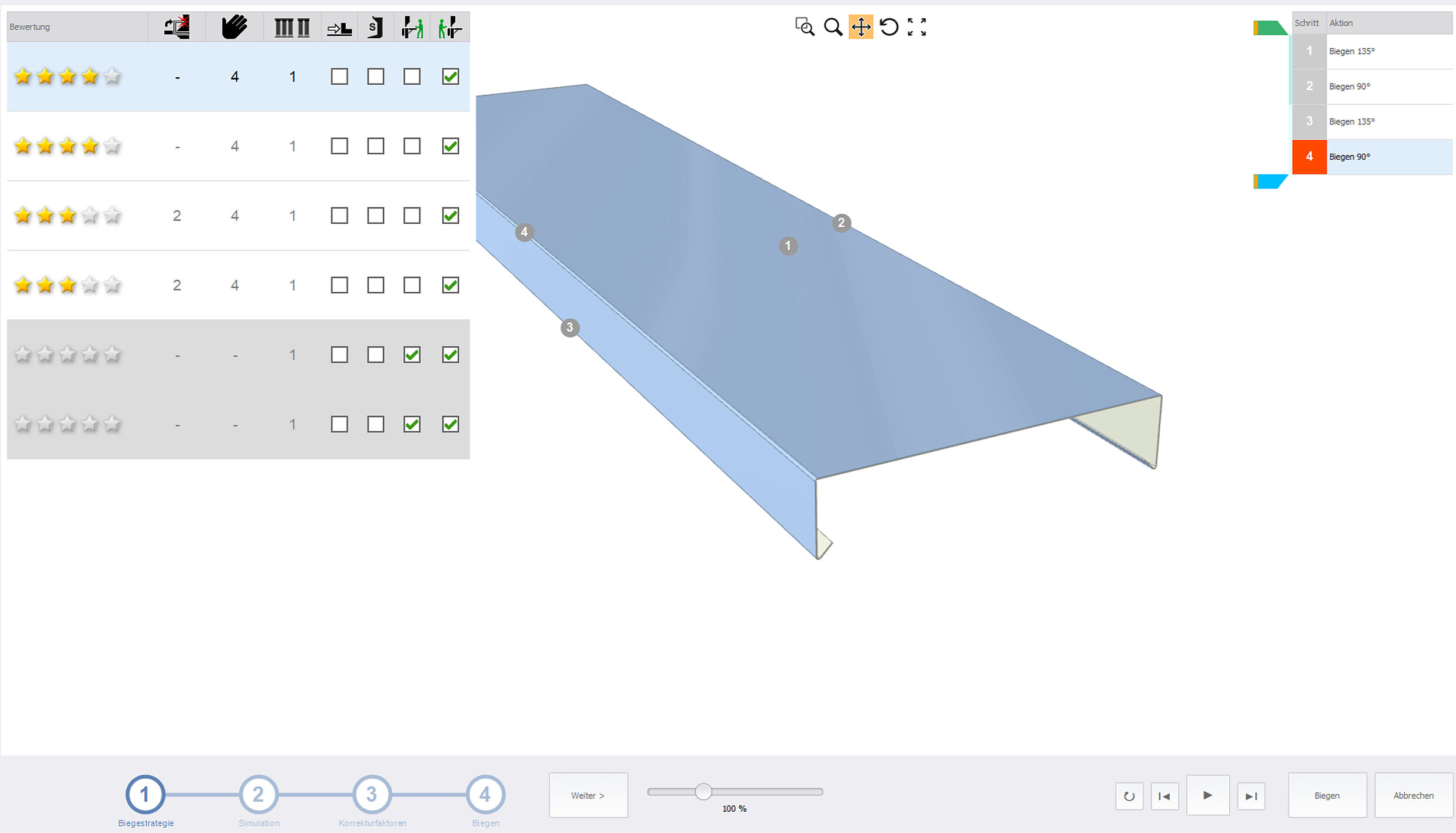 Ob für Dach- und Fassadenprofile, Werbeschilder oder Gehäuse: Diese Maschine hebt das Biegen auf ein neues Niveau. Die intelligente Bendex-Software programmiert Bauteile automatisch, bewertet alternative Biegesequenzen und visualisiert den Ablauf in 3D. Expertenwissen in Software umgesetzt!