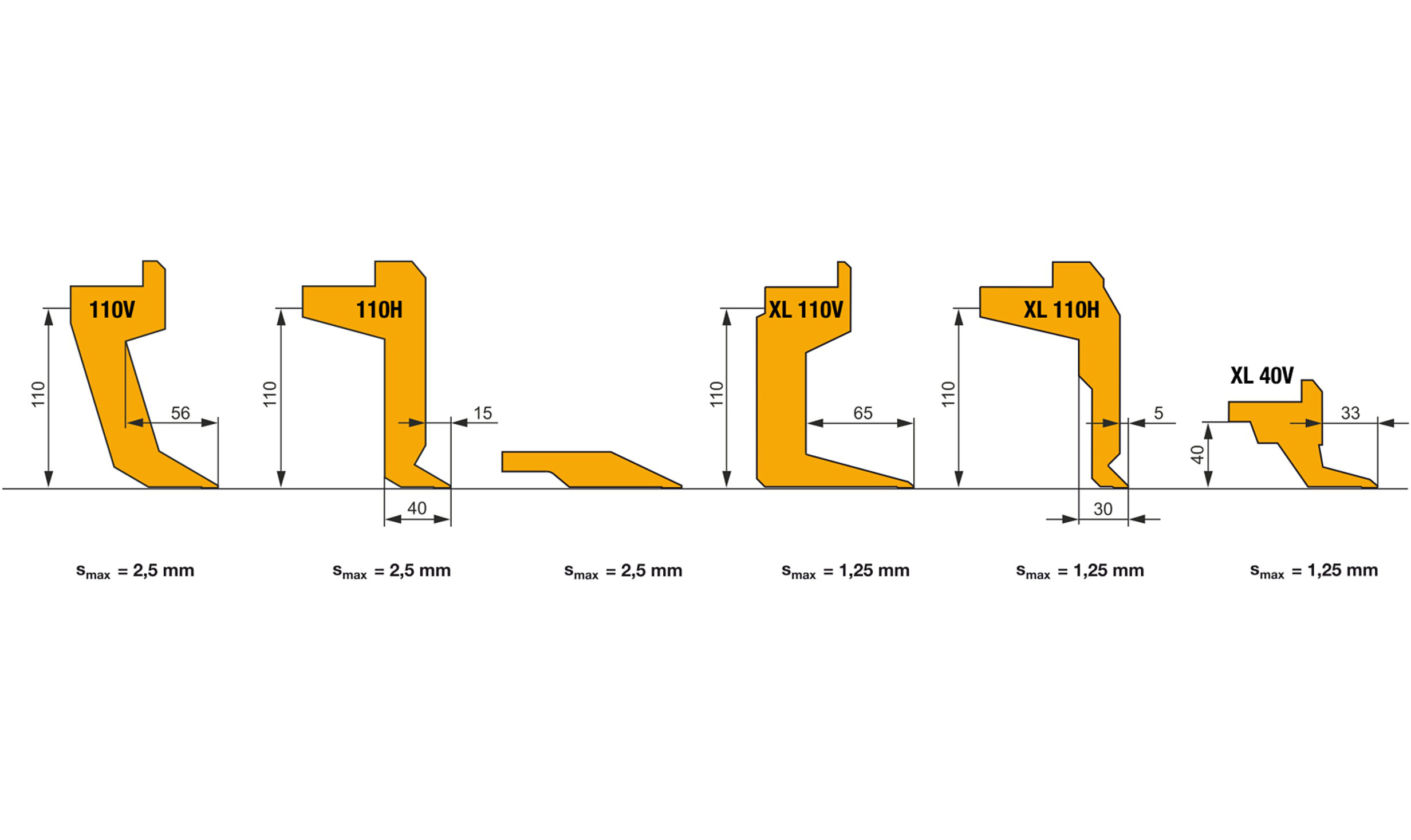 | Blechdicke max (400 N/mm²) | 2,5 mm | 2,0 mm | 1,5 mm |