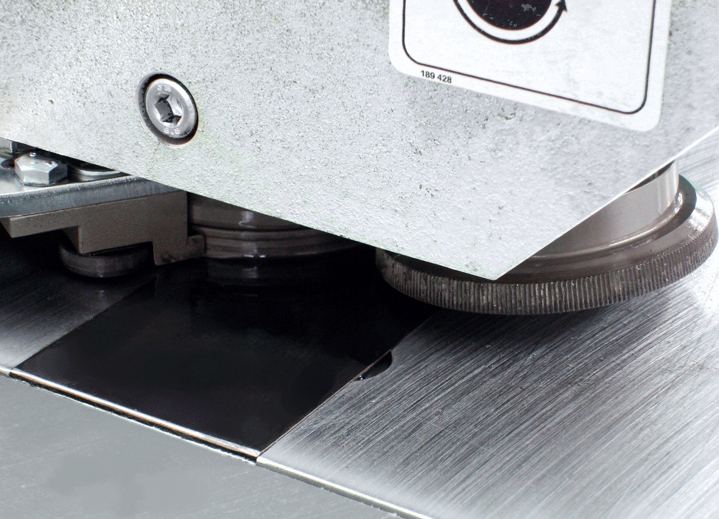 Die breite Auflagefläche im Ein- und Auslauf der Maschine stützt die Luftkanal-Formstücke ab. Ein verschleißfestes Druckstück an der Umformstelle sichert die Langlebigkeit der Umformstation. Ein zusätzlicher Federstahleinsatz in der Tischplatte reduziert den Verschleiß, den plasmageschnittene Blechteile verursachen.