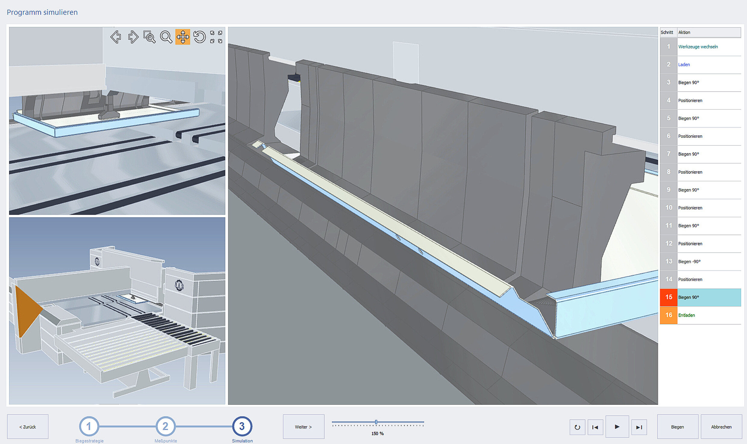 Beim Biegen der Blechkomponenten importiert die Bendex Maschinen Software oder Bendex Office Software die Geometrie des Biegeteils in einer Vielzahl von Dateiformaten und programmiert den Biegeablauf mit einem Mausklick. Wo das Programmieren bisher beispielsweise 10 Minuten gedauert hat, hat man mit der Bendex Software in unter einer Minute ein Biegeprogramm erstellt und kann sich obendrein noch eine 3D-Simulation des Biegeablaufs ansehen. In den Algorithmen der Software ist das Expertenwissen hunderter Programmierer hinterlegt. Das beschleunigt die Programmiertätigkeit nicht nur um das 10-fache. Setzt man die Office Software bereits im Konstruktionsbereich ein, kann der Konstrukteur seine neuen Komponenten ohne spezielle Biegekenntnisse auf Machbarkeit überprüfen – schon lange bevor die erste Platine gefertigt wird.
